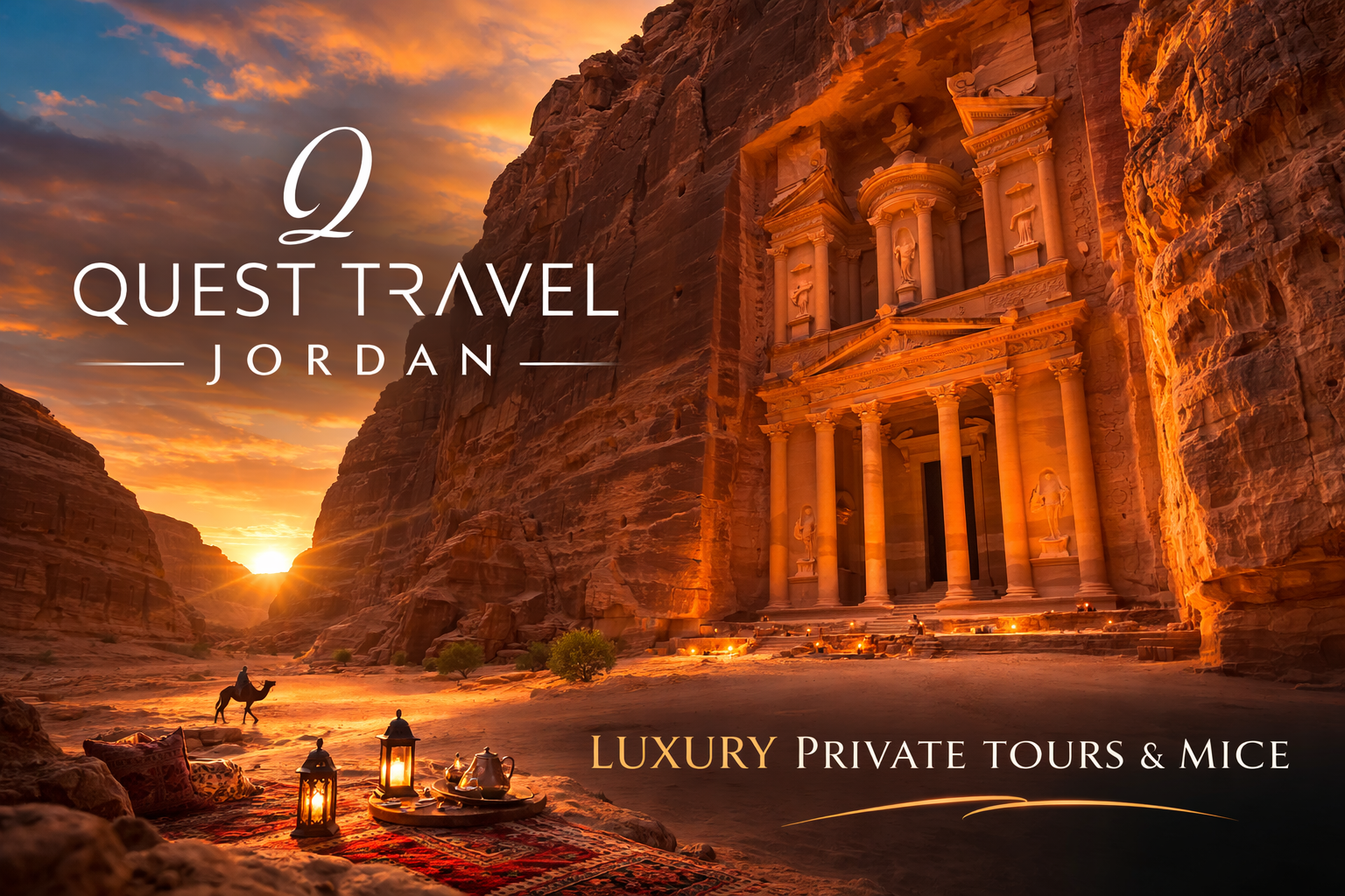 Jordan is not just a destination — it is a living story of history, culture, and extraordinary landscapes. As a leading Jordan DMC based in Amman, Quest Travel Jordan designs luxury tours, tailor-made private journeys, and high-end MICE programs throughout the Kingdom. Headquartered in Amman and operating across Jordan, we deliver destination management services throughout the country including Petra, Wadi Rum, the Dead Sea, the Red Sea coast of Aqaba, the Roman city of Jerash, the mosaic heritage of Madaba, and the forests and castle of Ajloun. With over 25 years of destination management expertise, we provide seamless planning, deep local insight, and refined on-ground execution for FIT travelers, tour operators, and corporate groups.