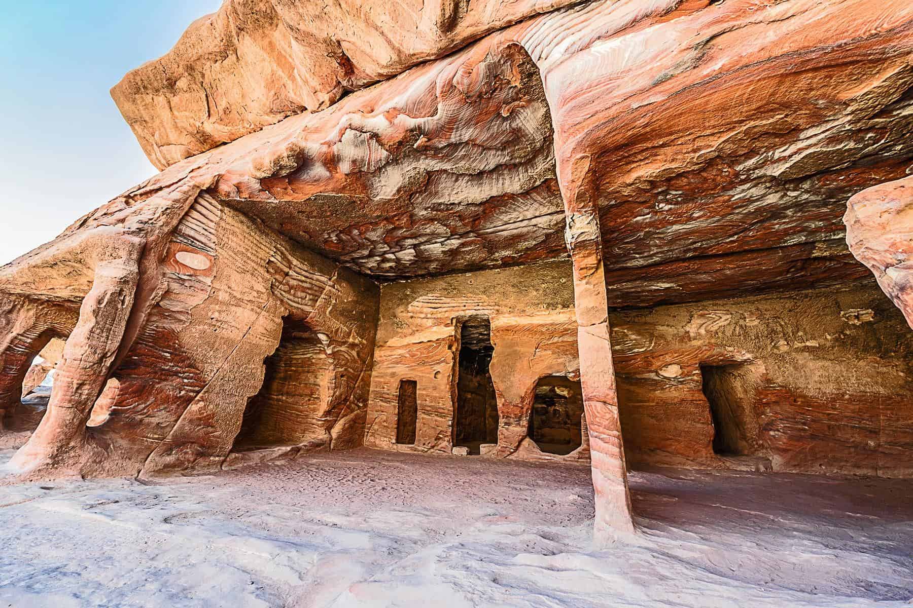 In the afternoon, the trail funnels into the outskirts of Little Petra (Siq al-Barid), a quiet Nabataean site that once served as a caravan suburb of Petra. The arrival here marks the completion of the Rift Valley Mountain Trek portion of the journey.